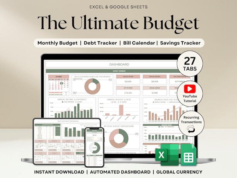 ✓ Excel spreadsheet of the Ultimate Budget Spreadsheet Template